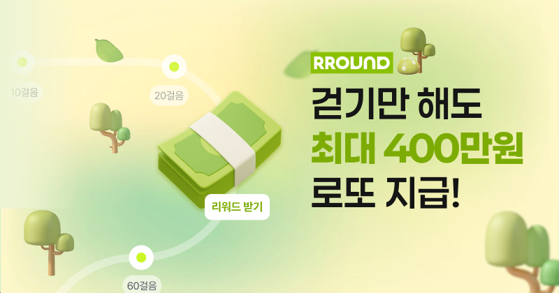 걷기만 해도 소득이 되는 발로소득이 더 커진 혜택과 기능으로 라운드(ROUND)라는 이름으로 리뉴얼되었습니다. 건강습관, 쇼핑, 챌린지, 커뮤니티, 차량 알림, 로또 리워드까지 하나의 앱에서 모두 경험할 수 있는 새로운 앱테크 쇼핑 플랫폼입니다.