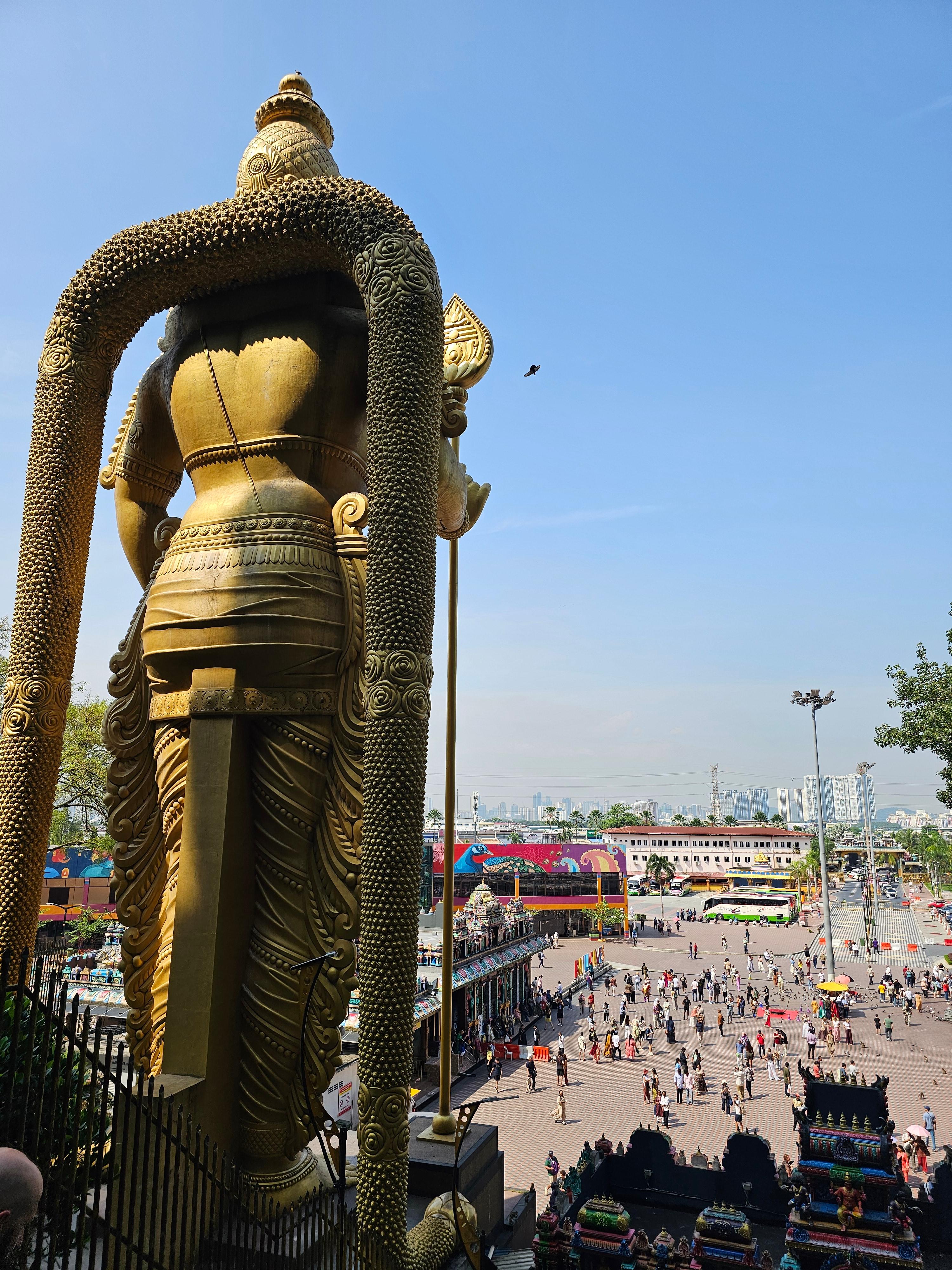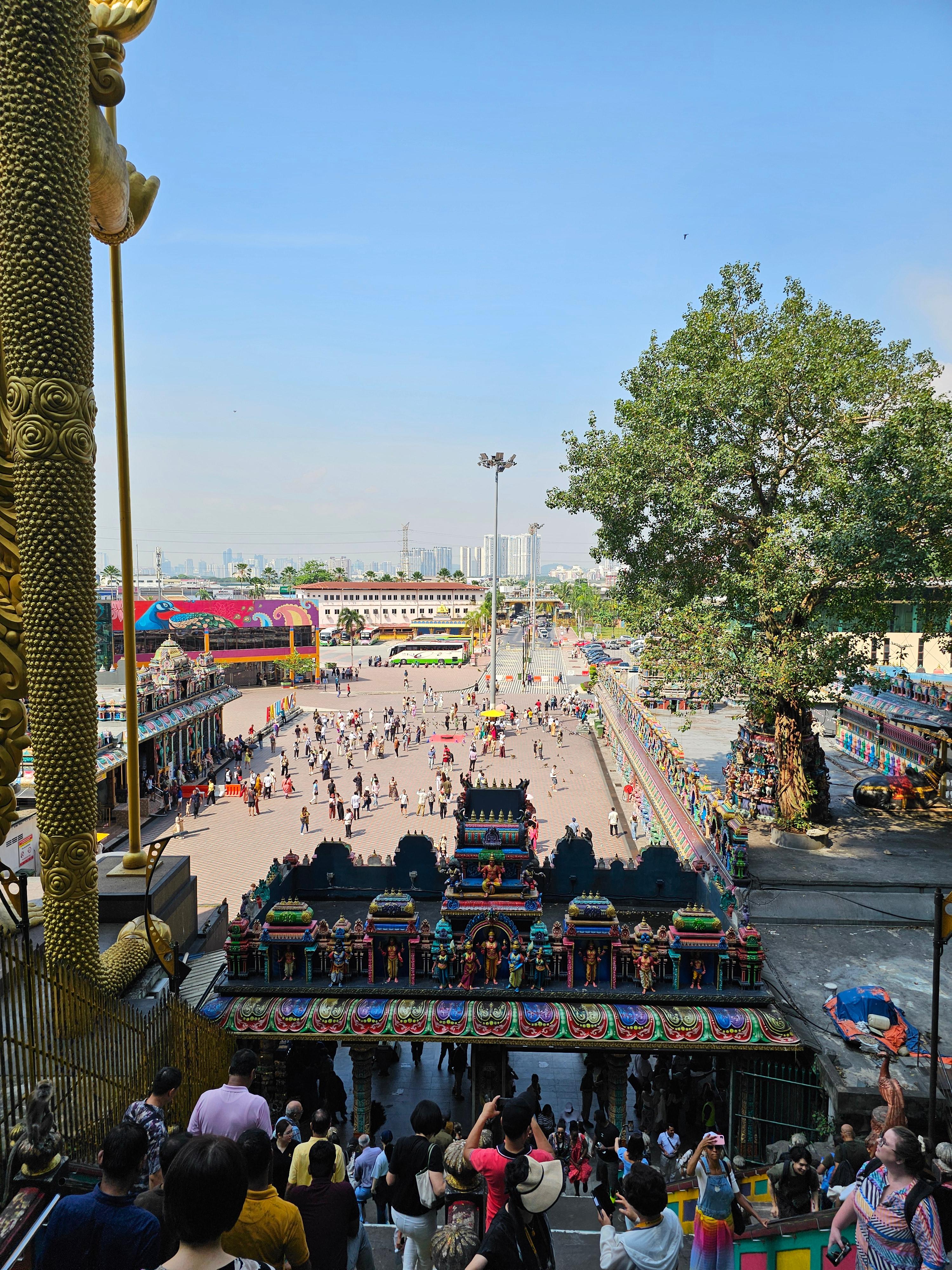 시내에서 차로 약 30분 거리의 힌두교 성지. 입구의 거대한 황금 무루간 신상과 알록달록한 272계단은 사진 스폿으로 유명해요. 계단을 오르면 석회동굴 내부의 신전을 볼 수 있어 독특한 분위기를 경험합니다. 원숭이가 많으니 음식·소지품은 꼭 주의하세요.