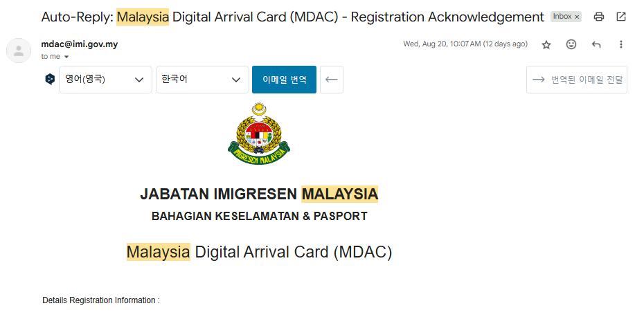 2025 말레이시아 MDAC 입국신고서 여행 정보 사진 관련.