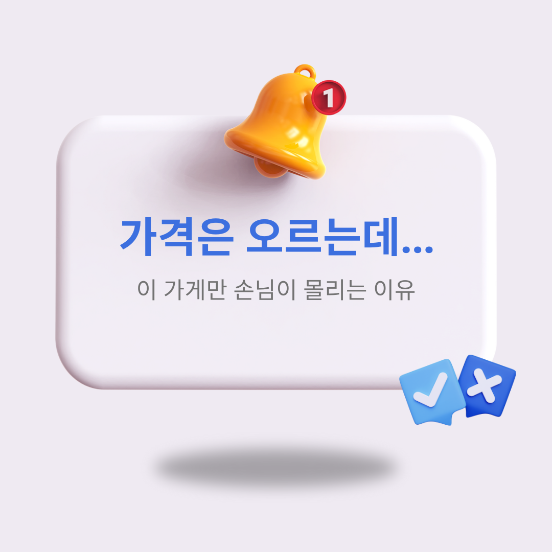 비슷한 가격이라도 "여긴 친절하고 서비스 좋아서 간다", "양이 많고 퀄리티가 좋아서 재방문한다"는 심리가 매우 크게 작용합니다. 따라서 매장은 가격 인상기에 더더욱 고객과의 신뢰를 쌓는 소통과 브랜딩에 집중해야 합니다.