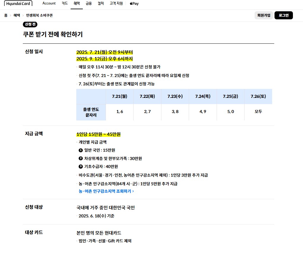 | 2025 현대카드 민생소비쿠폰 신청방법 총정리💳 (3) | 2025.07.24 |